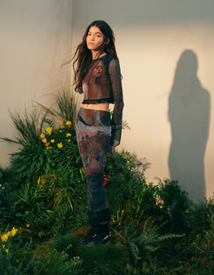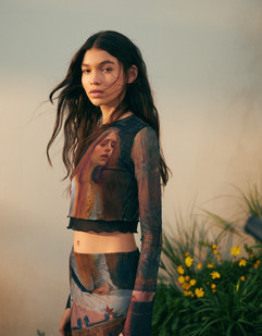 El nuevo drop ART SERIES - TATE, destaca el conjunto compuesto por un crop top de manga larga y una falda tubo en mesh en los que se puede apreciar la obra “La dama de Shalott” de John William Waterhouse (1888).
